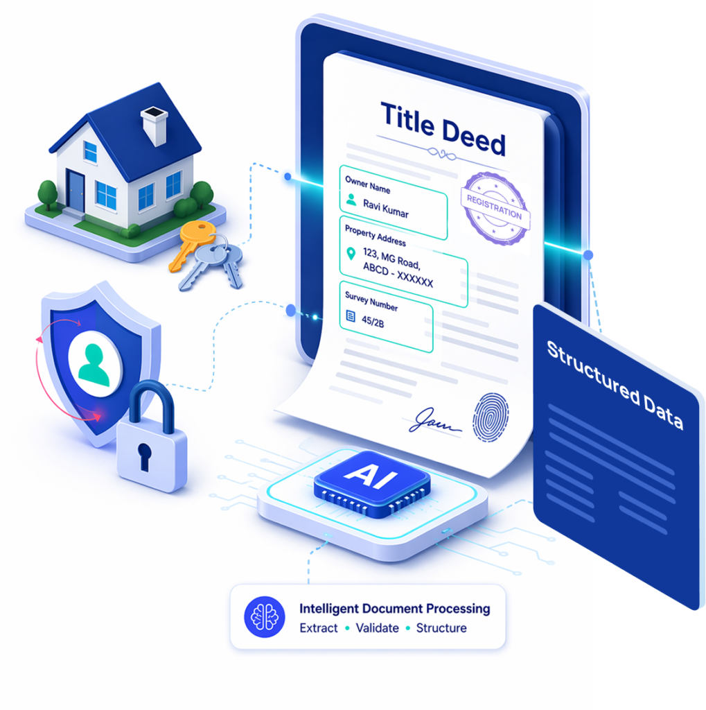 Automating ownership verification, legal due diligence, fraud detection, and collateral monitoring across the banking, financial services, and insurance (BFSI) lifecycle, it facilitates the speedy transformation of unstructured title deeds into machine-readable, context-rich data.